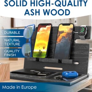 BarvA Two Phone Docking Station | Night Stand Desk Organizer | Wood Nightstand Organizer | Tablet Smart Watch Earbuds Charging Station | Upgraded Dresser Phone Stand | Bed Room Decor Gifts for Men