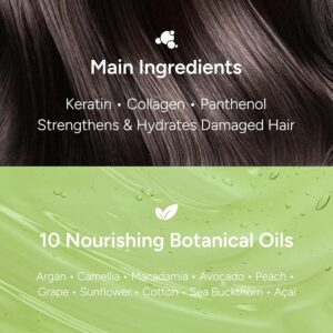 Botanical Oils + 12 Amino Acid Complex for Healthy-Looking Hair : Powered by a nutrient-rich blend of argan, camellia, macadamia, avocado, cotton seed, and grape seed oils, combined with hydrolyzed wheat protein and 12 amino acids to help improve softness, enhance moisture retention, support smoother-looking cuticles, and maintain the appearance of healthy, well-conditioned hair over time.