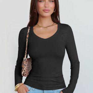 I’ve bought 3 of these shirts now. They’re just the right amount of stretch and cling. Very flattering. I wear them on their own with jeans or underneath a loose shirt.The v-neck shape is almost more of a deep scoop, but it still looks really nice. It’s modest, but still sexy.I ordered an XL, instead of a large, based on the recommendation. The fit is perfect. I’m not sure the next size down would’ve been too small with how much stretch there is, but I like the way the larger size fits. It’s comfortable.