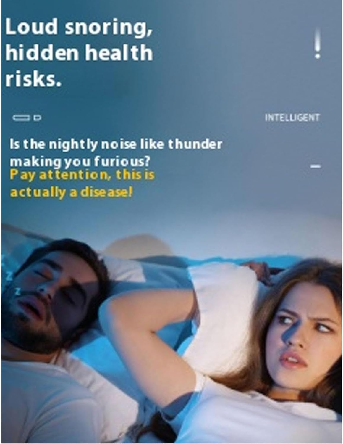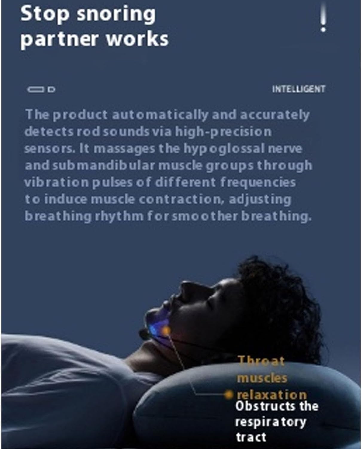 AI-Powered Smart Detection with Adaptive Feedback Equipped with an intelligent sensor that accurately detects snoring and distinguishes it from ambient noise.