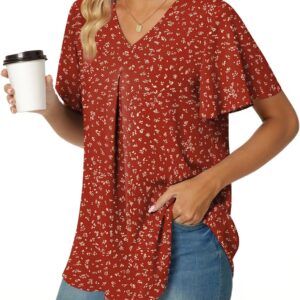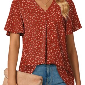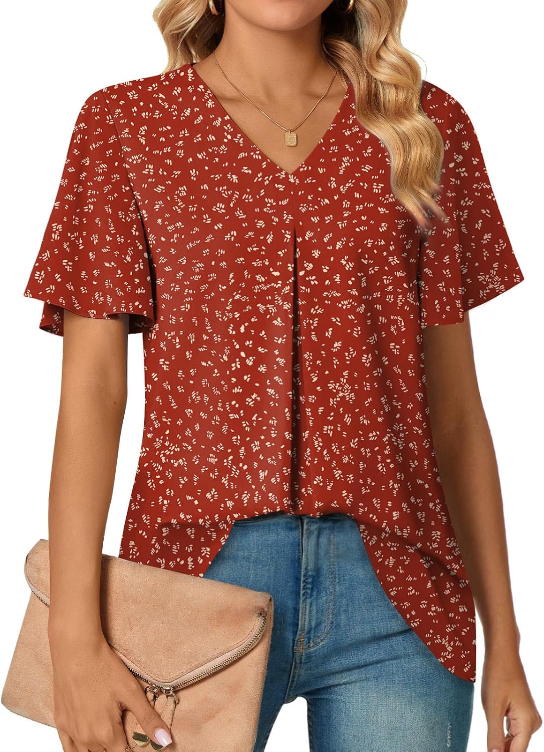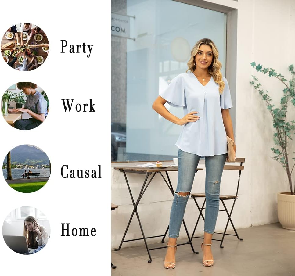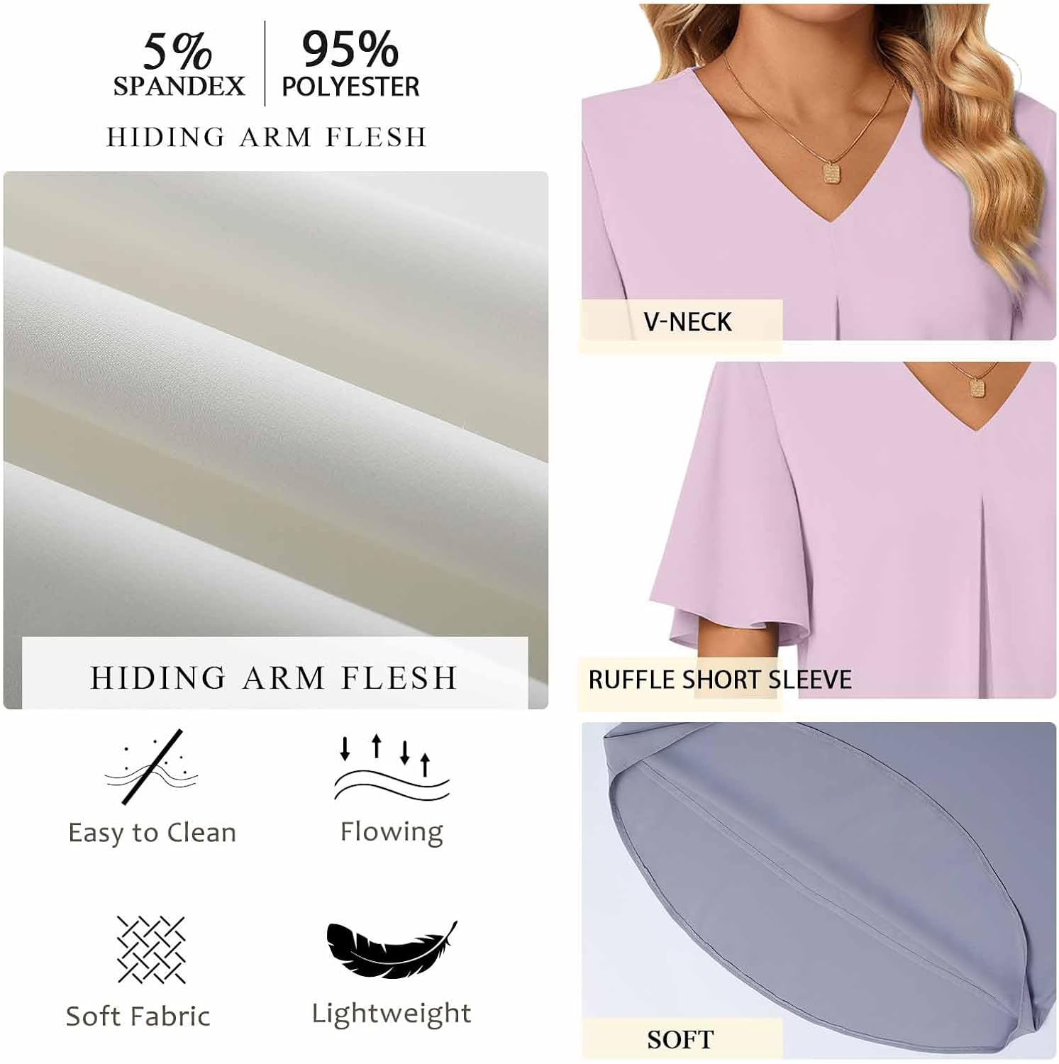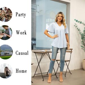 Anyally Womens Summer Chiffon Blouses Casual T-Shirts V Neck Tops Lightweight
