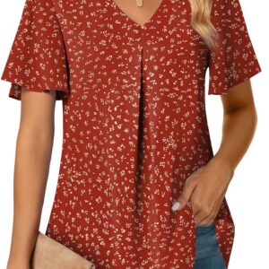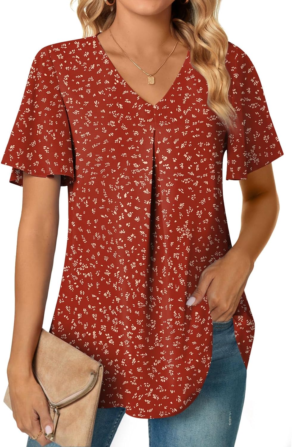I gave this a 5 star rate because this Anyally Women’s Summer Dressy Chiffon Blouse V Neck Short Sleeve Tunic Top is really lovely, was accurately described, and is a wonderfully lightweight material perfect for summertime wear. My only problem with it is my own body shape, which is admittedly weird, as a 2X size is often too big for my arms and chest as I do not have especially fat arms and my breasts are 38D which is not especially endowed and those two body parts fit an XL size best. However, my belly fat is definitely a 2X, and so I ordered a 2X and am keeping it even though the generous sleeves have way more material than I need for my arms, and my breasts do not fill out the chest area quite properly, while the waistline has just barely enough room to fit my 40-44 inch belly. I am keeping it, though, because it matches a skirt I’ve had trouble finding anything to match, and because the material is so lovely and cool for summer, and because i l know that going to the XL might fit my arms and chest better but would not be big enough to fit my belly, while a 3X would fit my belly better, it would be way to big for the rest of me, so I am stuck here. But it is a lovely blouse and if you do not have a weird shape like me, it would make a great purchase!