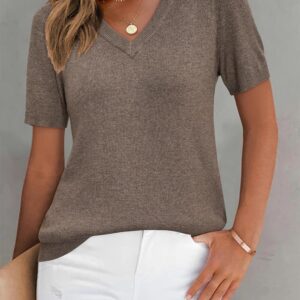 V Neck / Short Sleeve/ Basic Shirts / Wool Blended Tops