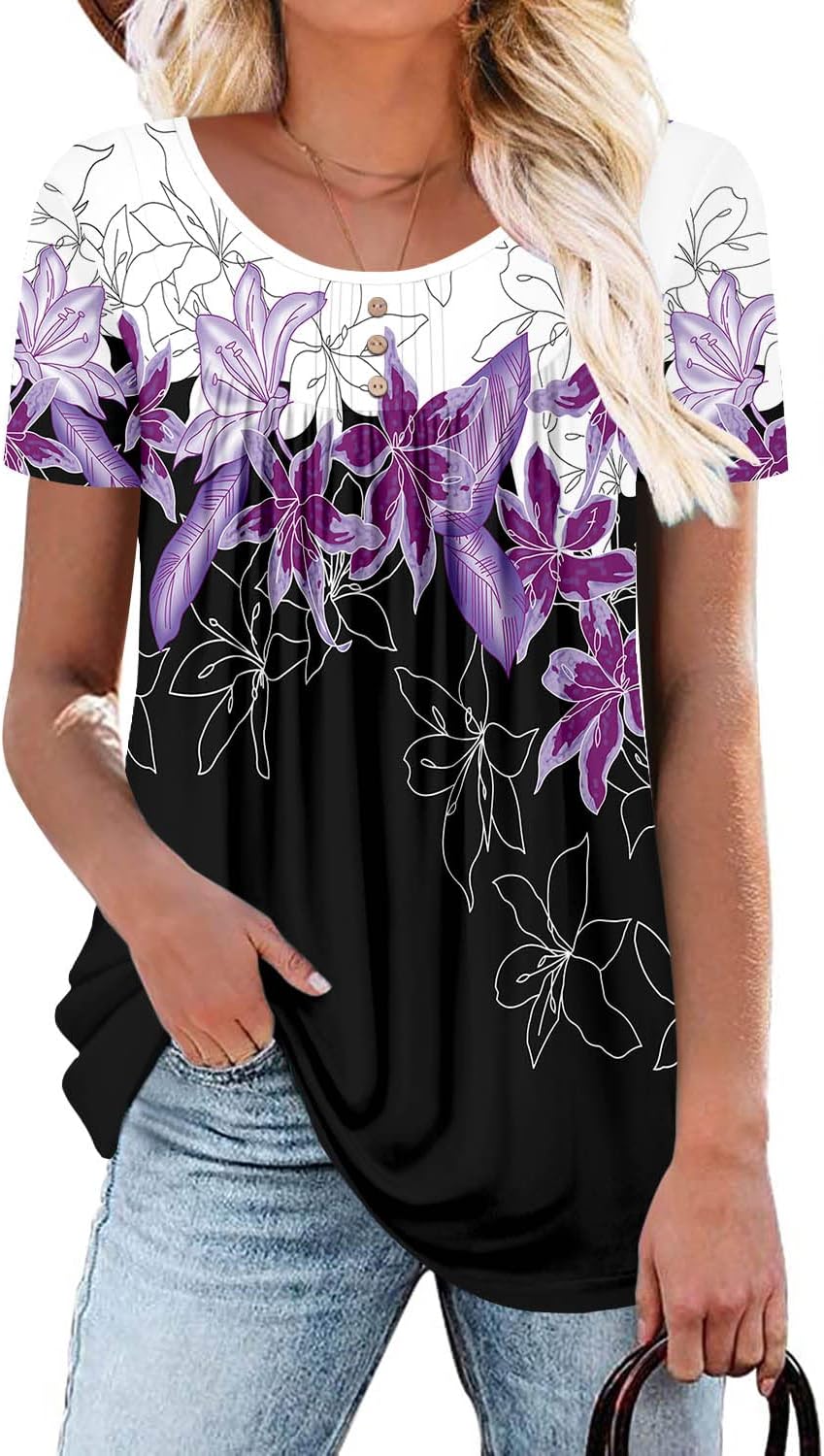 BETTE BOUTIK Women’s Summer Tunic Tops Flowy Flare Botton Down Shirts Blouses S-3XL