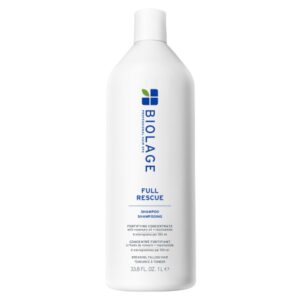 I am loving this Shampoo! My previous go-to shampoo’s price went way up and so I looked for an alternative, and I’m so glad I did! This Biolage Full Rescue Shampoo has given me excellent results after just the first wash. My “old lady” gray hair was softer and more manageable and helps the short flyway hairs stay in place. It may be my imagination but my scalp also stayed calmer and cleaner a day or two longer that with my old shampoo. This is my new go-to.