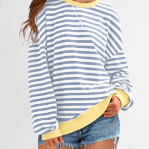 BTFBM Oversized Striped Sweatshirt Long Sleeve Top