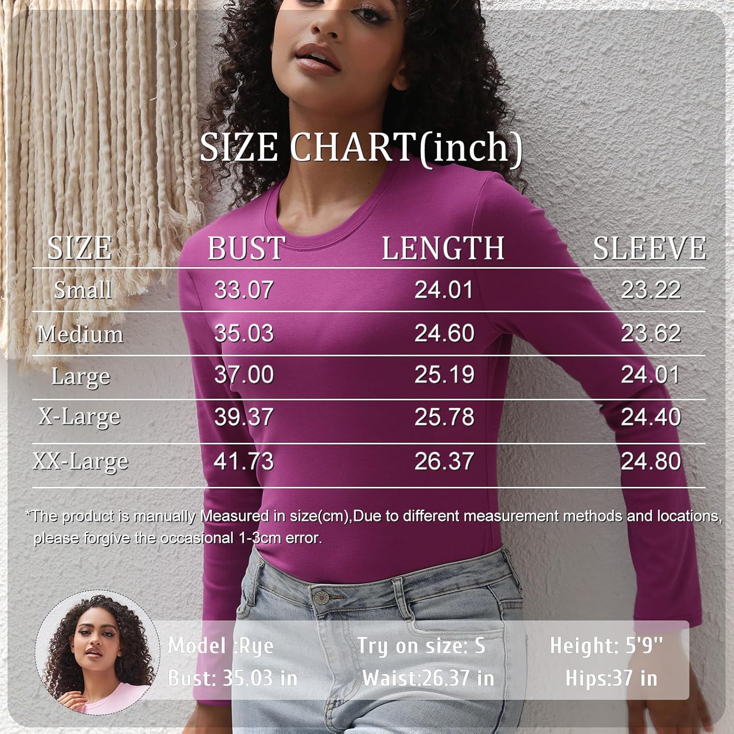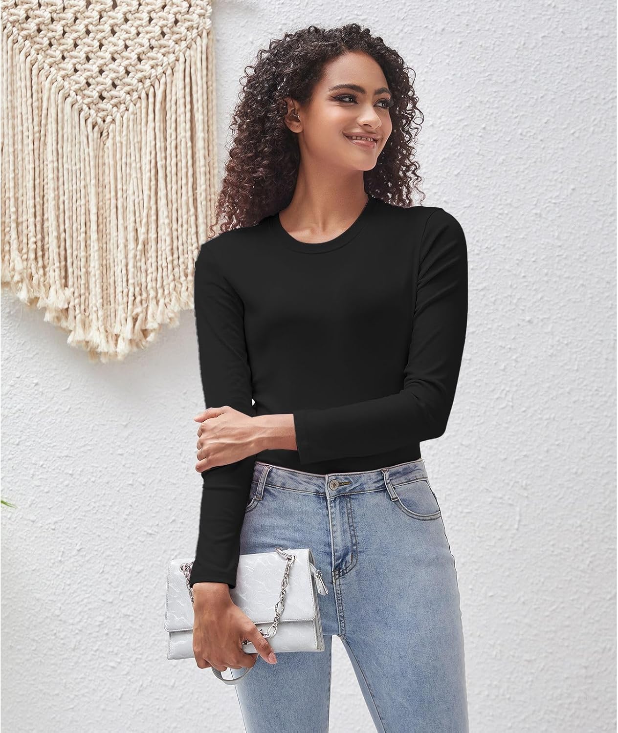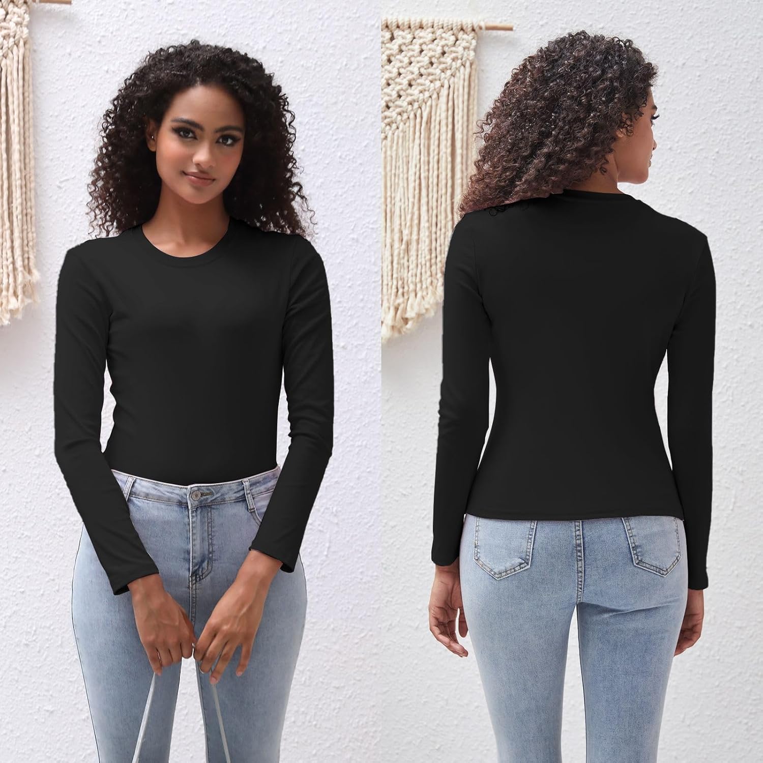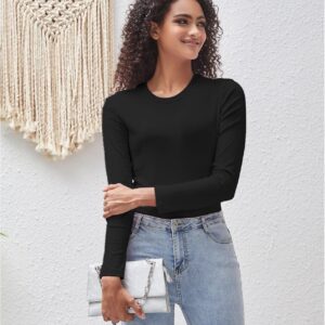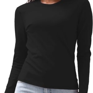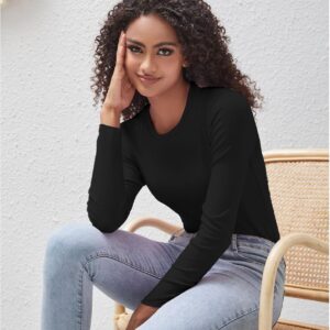 Soft and Stretchy Blend: Experience the comfort of our exceptional fabric that combines the natural softness of cotton with the flexibility of spandex.Versatile Solid Colors: The solid color and basic design make these long sleeve tees for women incredibly adaptable, transitioning seamlessly from casual to more dressed-up events.Flattering Silhouette: The slim fit accentuates your curves, offering a confident and comfortable fit that suits every body shape.
