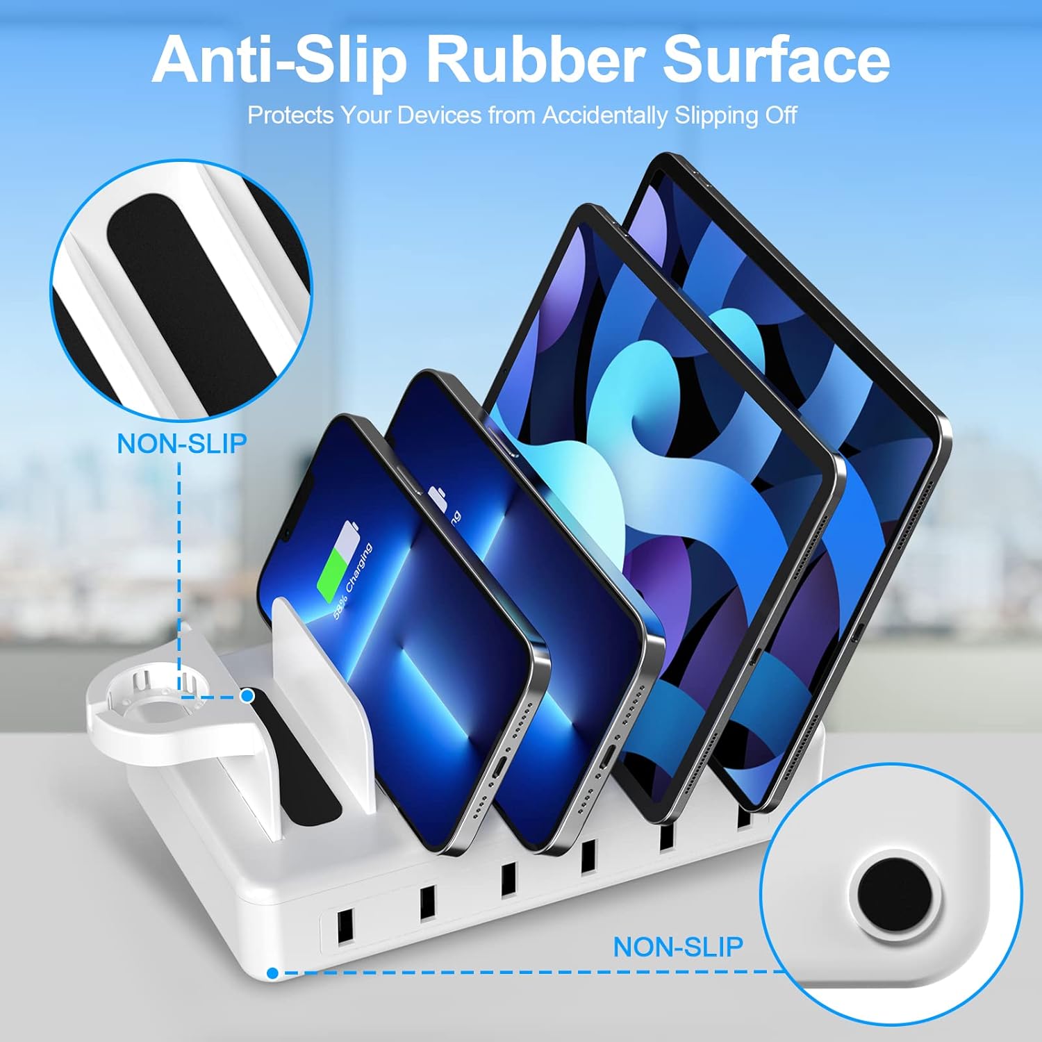 CREATIVE DESIGN Charging Station for Multiple Devices, 50W 6 Ports Charging Dock with 6 Cables Compatible with Cellphone,Tablet, Kindle, Apple Watch and Other Electronic