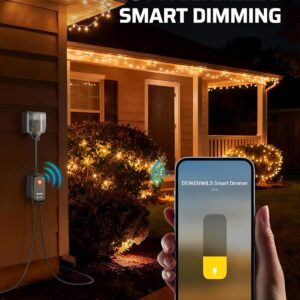 For the price, this DEWENWILS smart dimmer plug is GREAT for the purpose I wanted — which is to power bistro lights on my deck. I needed a product that was weather-resistant, which this meets by being IP44 rated. I also wanted something that could be turned on/off with Alexa, as we use it extensively in our house, while also having a a switch. Finally, the dimming capabilities are the best feature, as it allows us to ‘tone down’ the lights a bit for when you want to enjoy the deck without feeling like you’re sitting in a parking lot. This switch is super easy to install and set up, and I had no connectivity issues to my Alexa. It is compatible with my iPhone and Alexa devices, and provides all the functionality I want. I highly recommend this switch, especially for outdoor lighting!