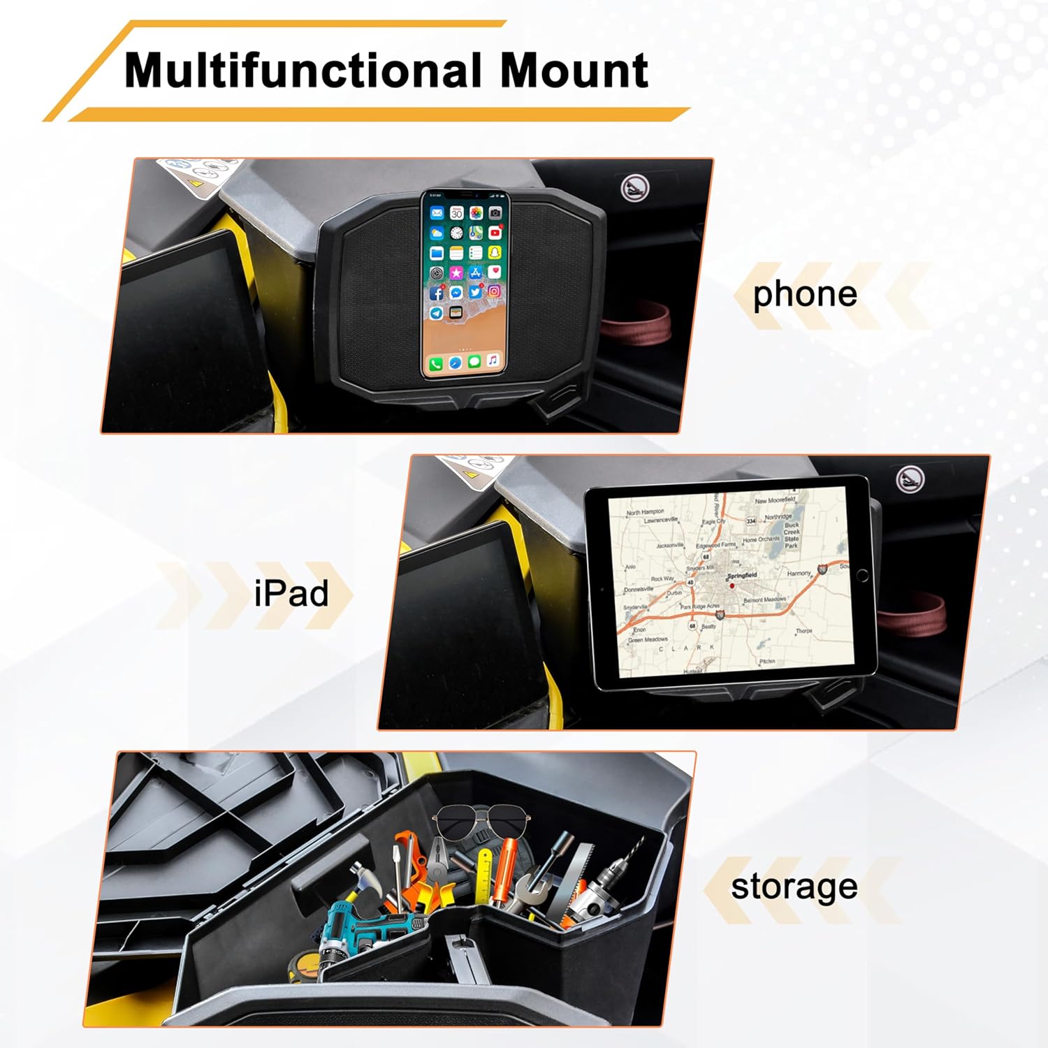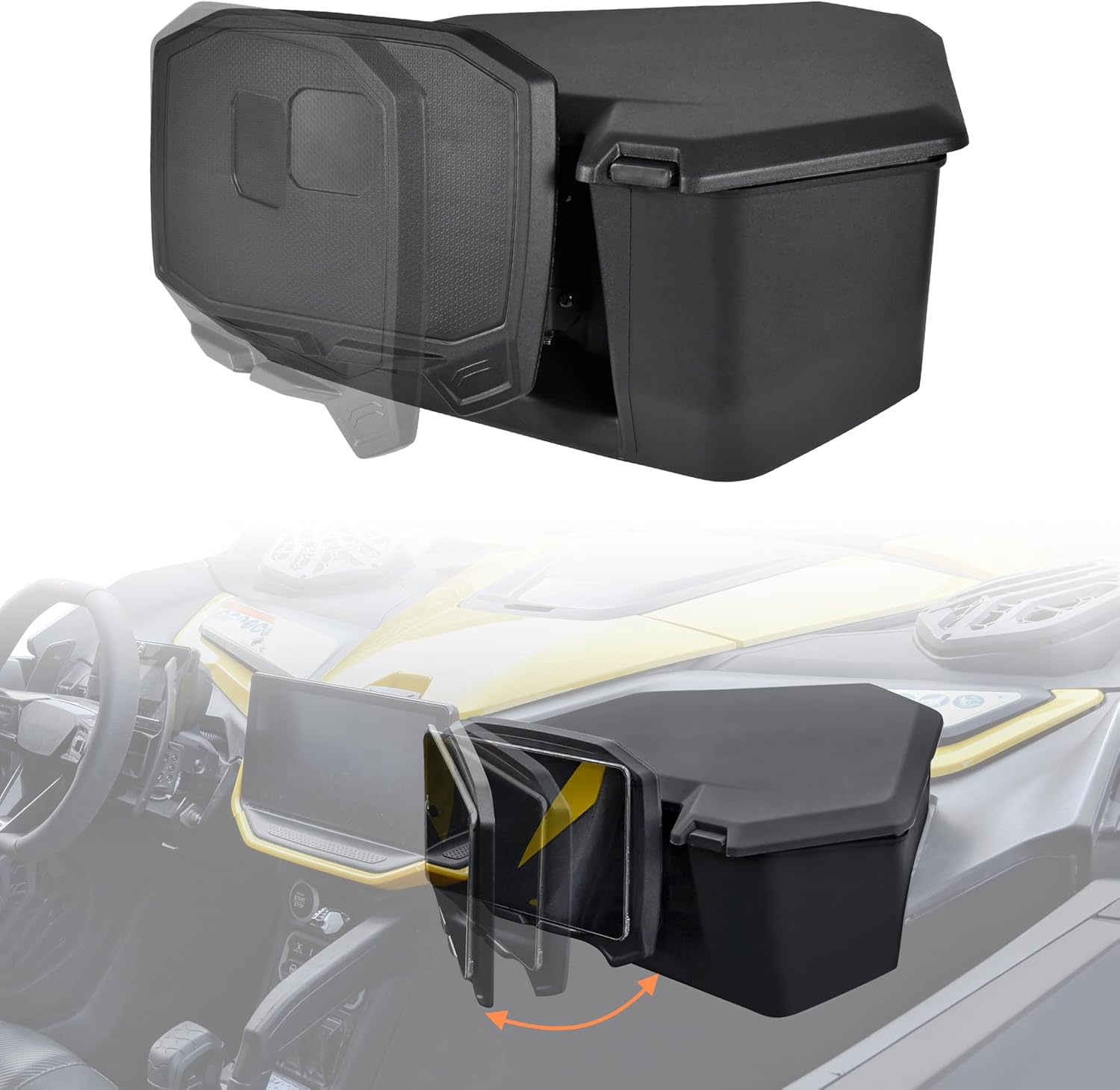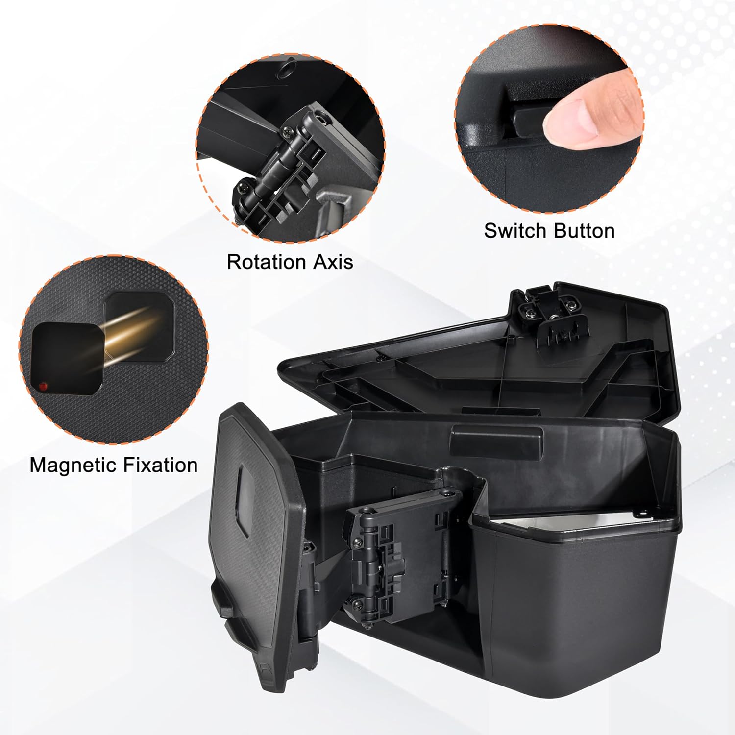 MAGNETIC ROTATABLE MOUNT: It can support any device such as iPad, tablet or phone, without size limitations. Simply stick the magnetic block to the back of the device and it can be firmly attached to the panel without falling off. The panel can rotate from multiple angles, allowing both the driver and passengers to view the screen. When not in use, the internal 4L large capacity space can be used to store tools