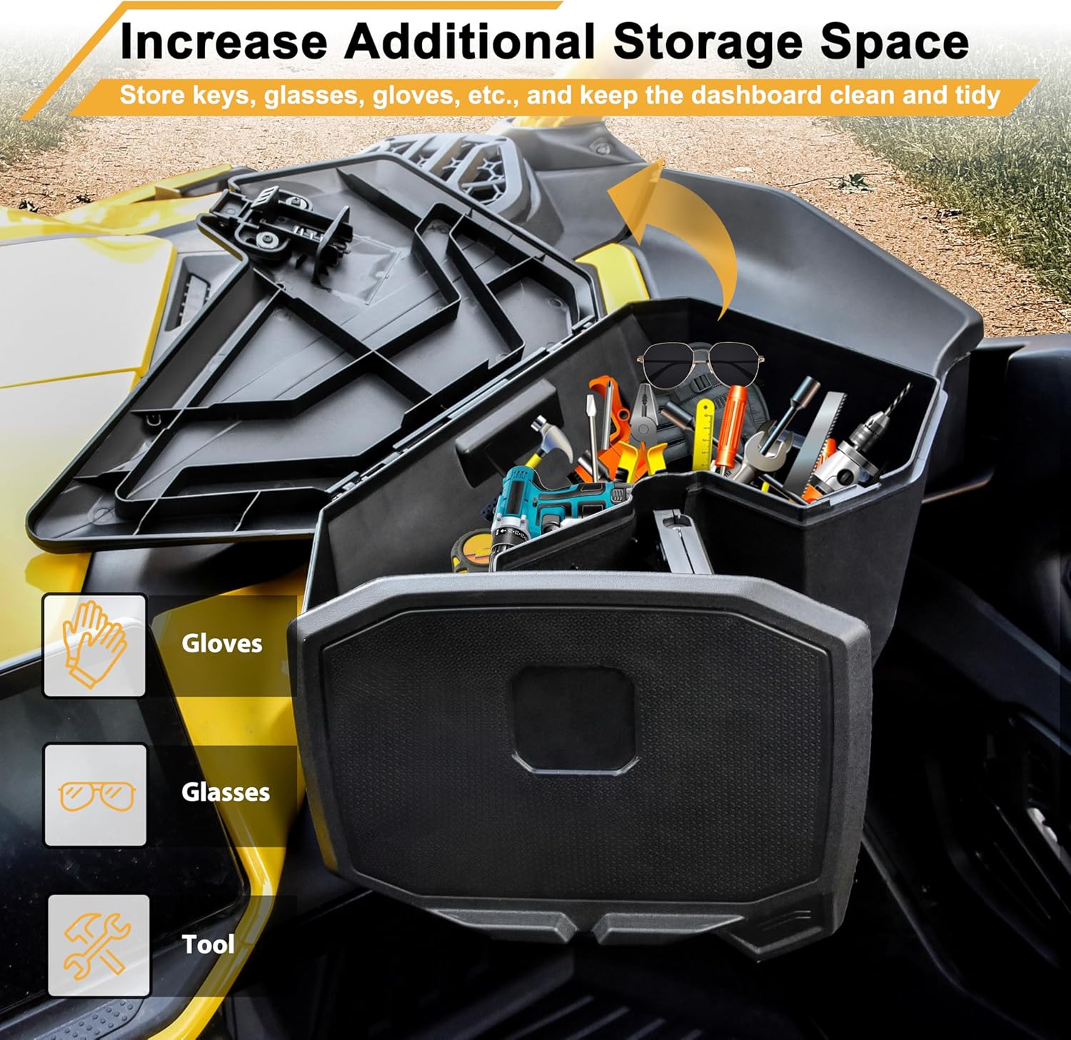 Additional 4L storage space can be used to store tools such as measuring tapes, wrenches, gloves, etc., which can keep the dashboard clean and tidy.