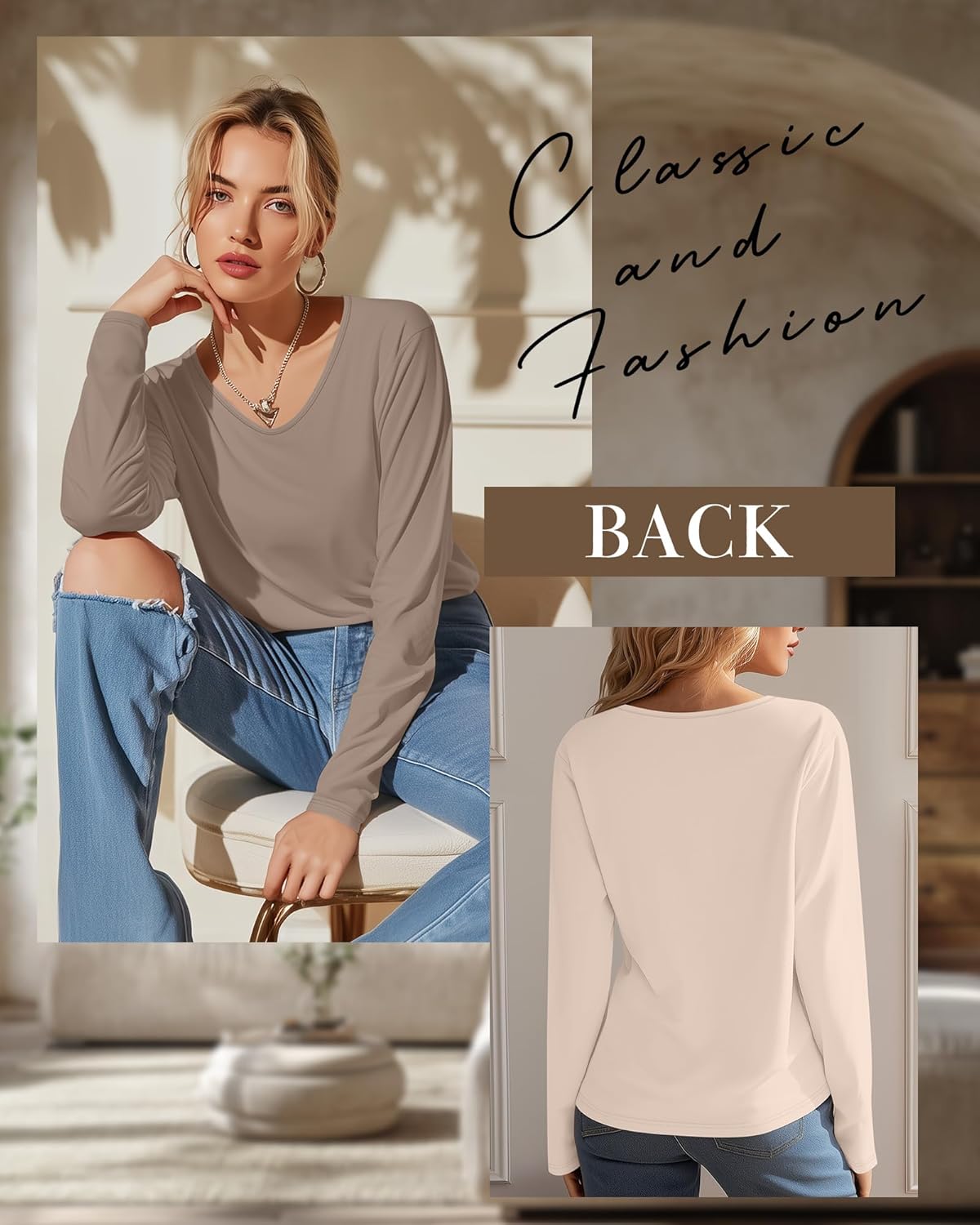 V-neck long-sleeved top, combining comfort and style, available in a variety of colors, fashionable and versatile.