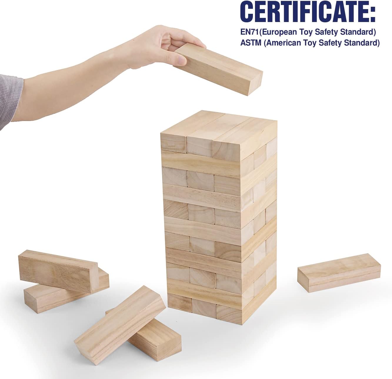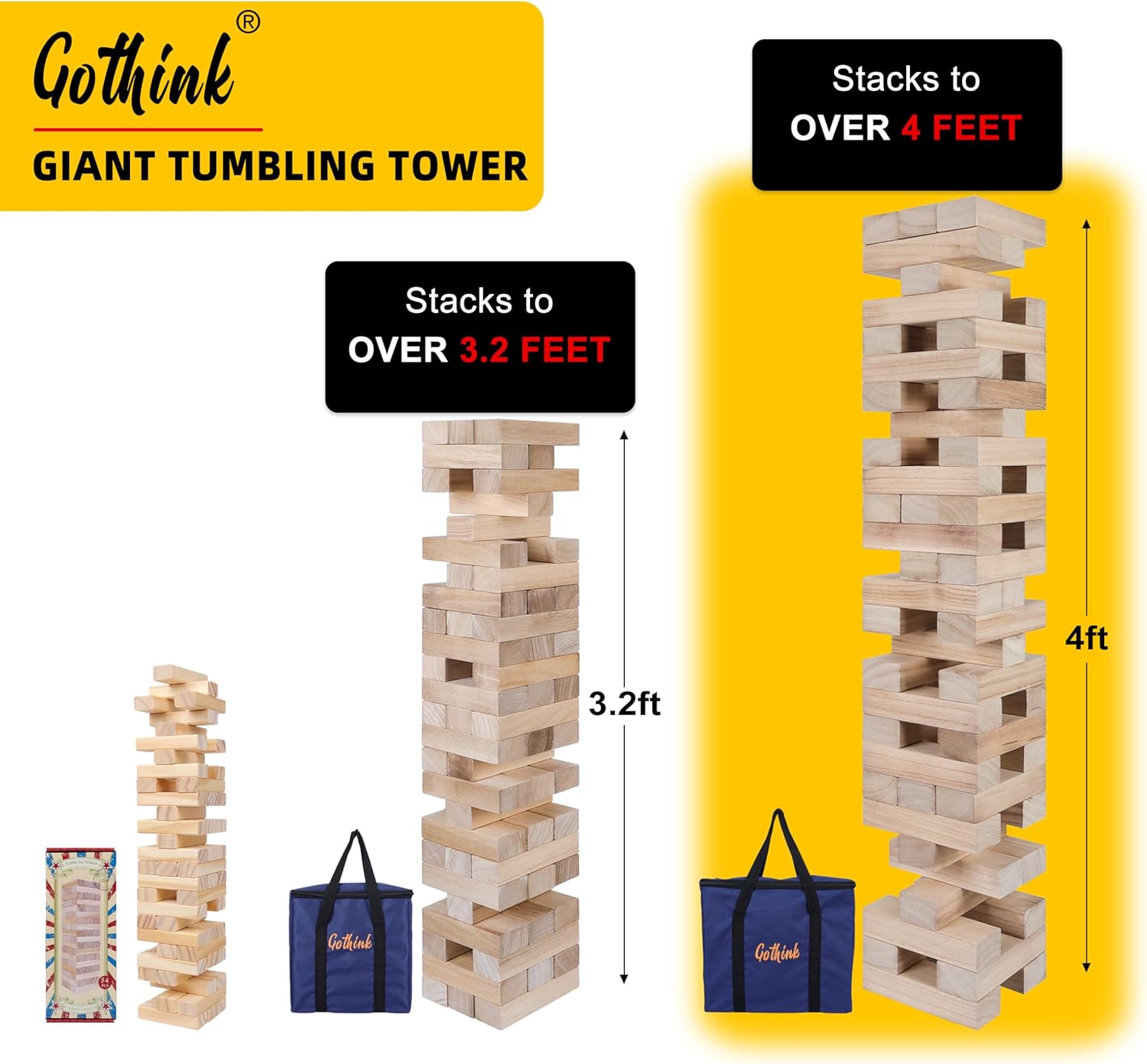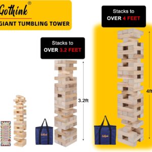 GOTHINK Giant Tumble Tower Game, Large Tumbling Tower Stacking to Over 4 FT 54pcs Wooden Jumbo Blocks for Outside Yard Games with Carry Case Timber Stacking Game Night Toy Gift for Kids Adults Family