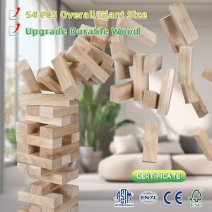 【EDUCATIONAL AND FUNNY GAME】The jumbo tower is an intelligent Game to cultivate patience, persistence, and creativity, which can make the party games lively and provide entertainment for your family and friends. It improves hand-eye coordination, balance, self-control, and fine motor skills. In addition, you can create your own rules or bonus rules. The tumbling game encourages interactive play, reduces screen time, and is a perfect way for parents and kids to bond over hours of fun.