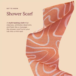 SHOWER ESSENTIAL: The Hanni Shower Scarf, a multi-tasking body scrubber that cleanses, exfoliates dead skin, and offers a massage-like experience, turning your shower into a mini-spa.