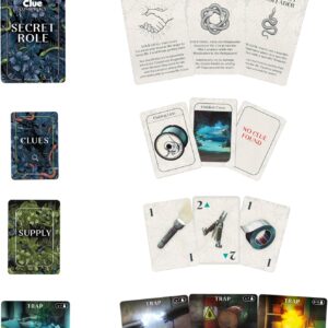 The Clue Conspiracy game is the secret role game of shifting suspicions! As a guest at the luxe Black Adder Resort, you discover that someone (maybe even you!) wants to murder its manager, Mr. Coral. A series of deadly traps have been planted all over the resort—and someone is armed! Now you must solve the ultimate mystery: who can you trust? In this strategy game of deception and deduction, players play as Clue characters and take on secret roles on opposing teams: Friends vs. the Conspiracy. The Friends work to save Mr. Coral and uncover the Who, Where, and What of the Conspiracy’s secret Plot. The Conspiracy members try to secretly sabotage the Friends and carry out his murder at a specific location and with a specific weapon. Both teams will also find clues to share—or not! Which side will succeed? This thrilling strategy game for 4-10 players is a fun group game for ages 14+. This murder mystery game makes a great gift for fans of true crime, secret role games, and the classic Clue game. Clue and Hasbro and all related properties are trademarks of Hasbro.
