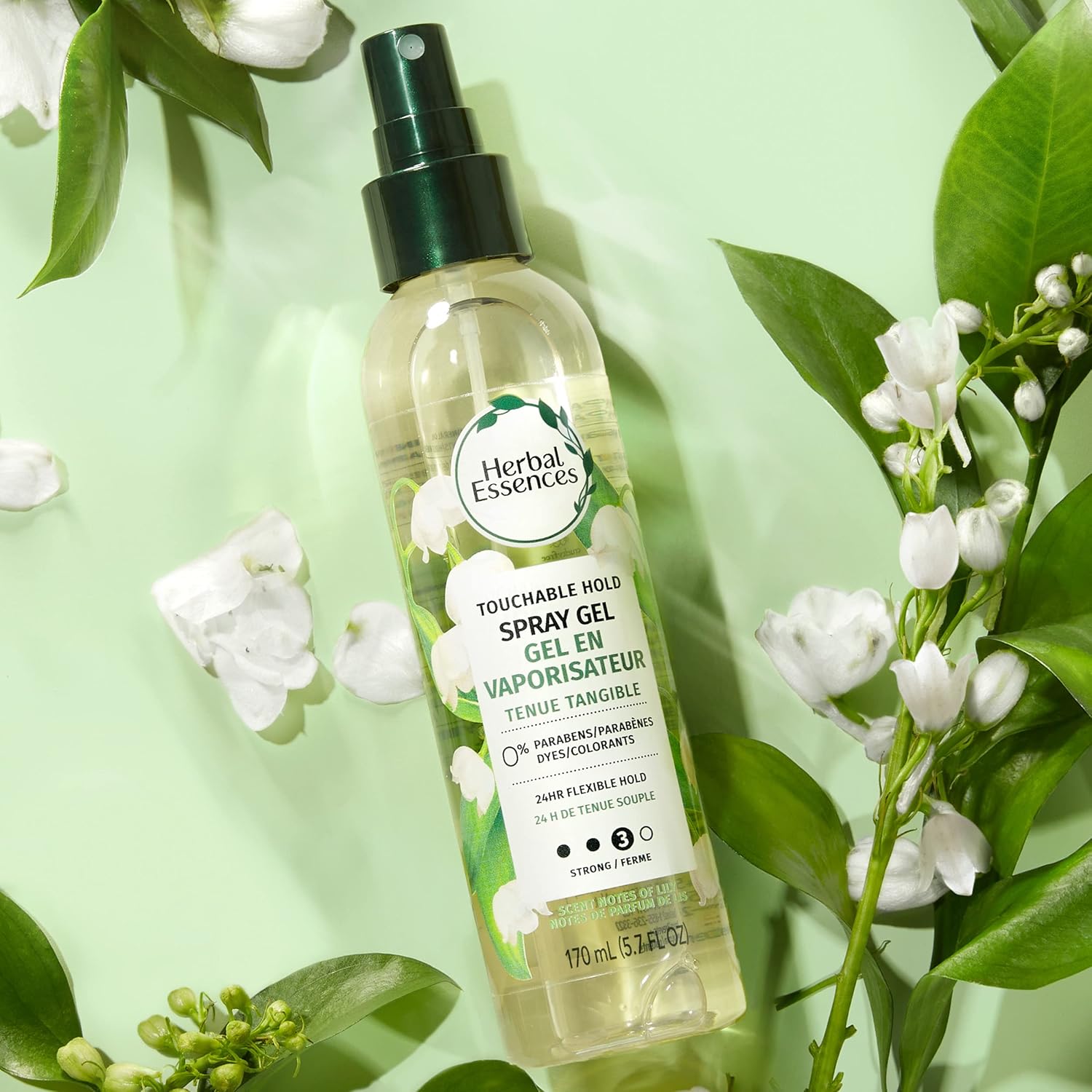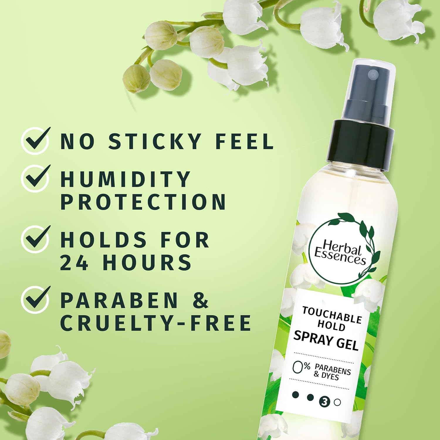 Herbal Essences Touchable Hold Spray Gel keeps your style in place without leaving it feeling sticky or stiff. That means you’ll get the look you want and still be able to run your fingers through it. You’ll get the best of both worlds. Giving your hair great definition is as easy as spritzing in a hairspray. Just spray onto damp hair and let your locks air dry. You can also use a hair dryer on low to speed things up. Let the light lily scent lift your spirits and discover how good it feels to use a gel hairspray that’s certified PETA Cruelty-Free, dermatologist-tested, paraben-free, mineral-oil free, color-safe, dye-free, and pH-balanced. Pair it up with the Herbal Essences Tea Tree Oil Shampoo and Conditioner and experience the feeling of real results with infused ingredients inspired by nature.