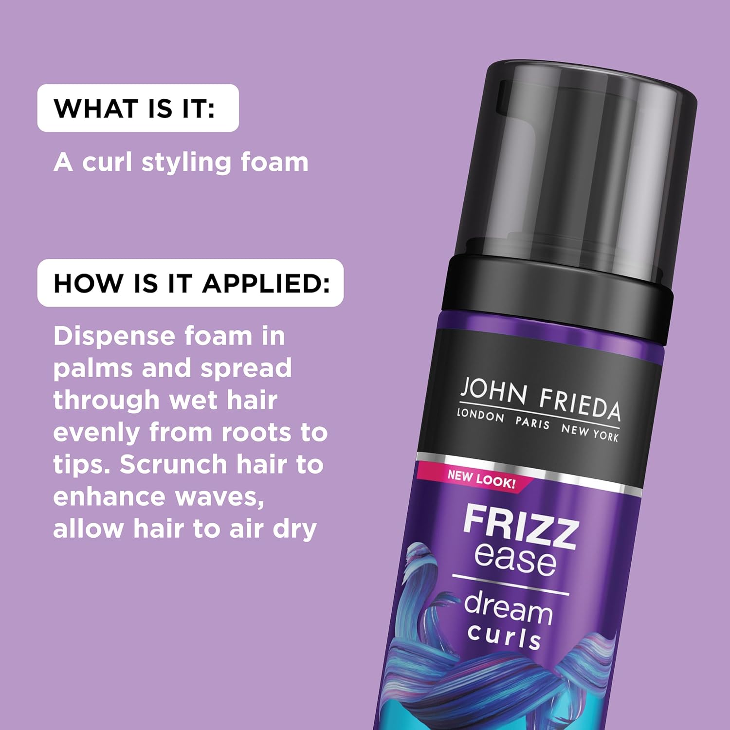 John Frieda Anti Frizz, Frizz Ease Dream Curls Air Dry Waves Styling Foam, Curl Defining Frizz Control, Hair Product for Curly and Wavy Hair, 5 Oz