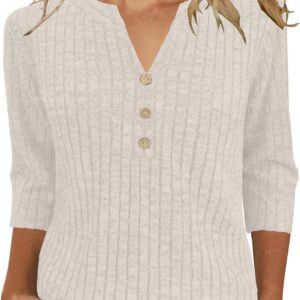 Sweaters for Women 3/4 Sleeve Pullover Tops V Neck Loose Casual Shirts