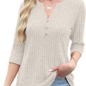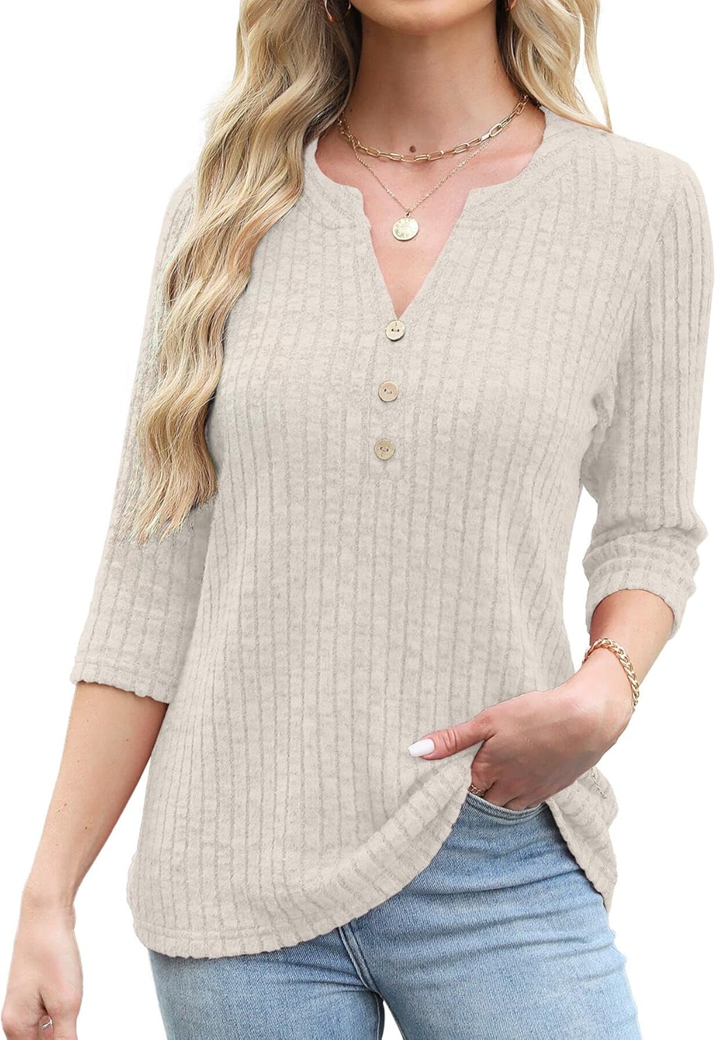Womens Sweatshirts 3/4 Sleeve Shirts V Neck Lightweight Sweaters