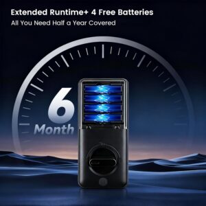 【Secure and Durable】 Intuitive touchscreen digital keypad, Alloy body, Long Battery Life, 4pcs AA batteries can provide 10,000 openings (approx. 12 months), For security reason, smart locks for front door will automatically lock for 5 minutes when enter the password incorrectly more than 5 times. A great solution for home hotel Airbnb etc.