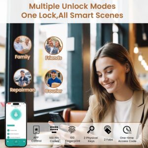 【 Intelligent Management】Opt for our intelligent deadbolt smart lock for front doors! Sign in to the APP to monitor unlock records & wrong passcode attempts in real time. Set timed, permanent, one-time, or custom passcodes for guests/staff. Store 100 fingerprints & 100 user codes, remotely share access codes—perfect for homes, offices, Airbnb, and hotels.