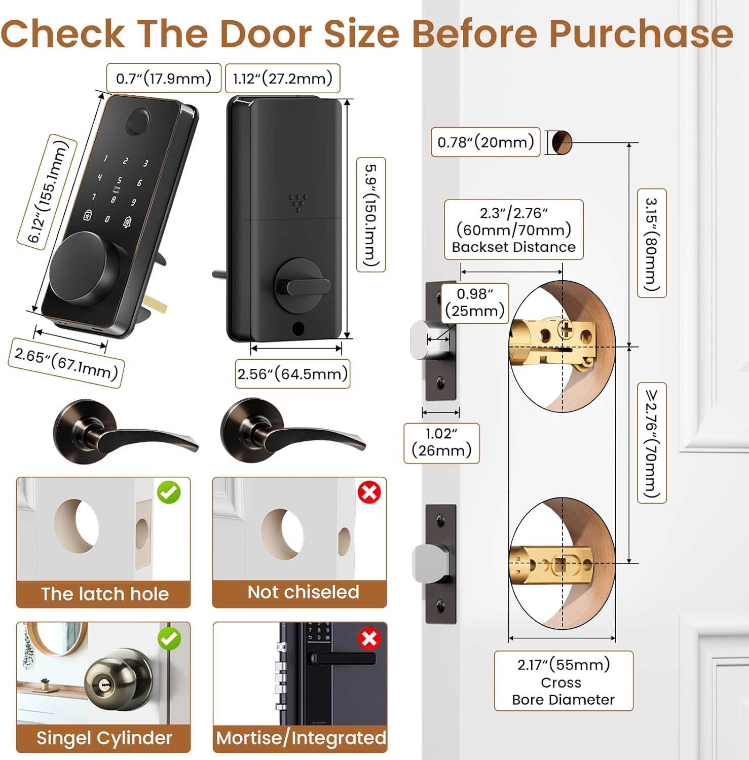 This smart lock with handles has been a fantastic upgrade for my door. The fingerprint reader is fast and accurate, and the keypad responds instantly. I really like having multiple ways to unlock it — fingerprint, app, code, or key — so it’s convenient for everyone in the house. Installation was much easier than I expected, and the lock feels solid and well‑built. The auto‑lock and one‑touch lock features are super handy, and the app makes it easy to manage access. Overall, it’s a great mix of security and modern convenience. Highly