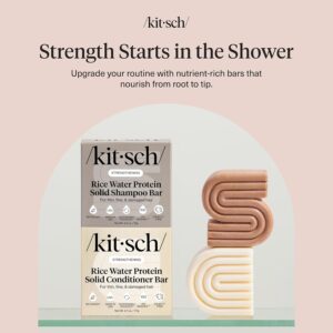 Kitsch Rice Water Protein Solid Shampoo and Conditioner Set for Hair Growth – Strengthening Hair Care Duo w/Rice Protein & Vitamins for Damage Repair – Paraben, Sulfate & Silicone Free, Made in USA