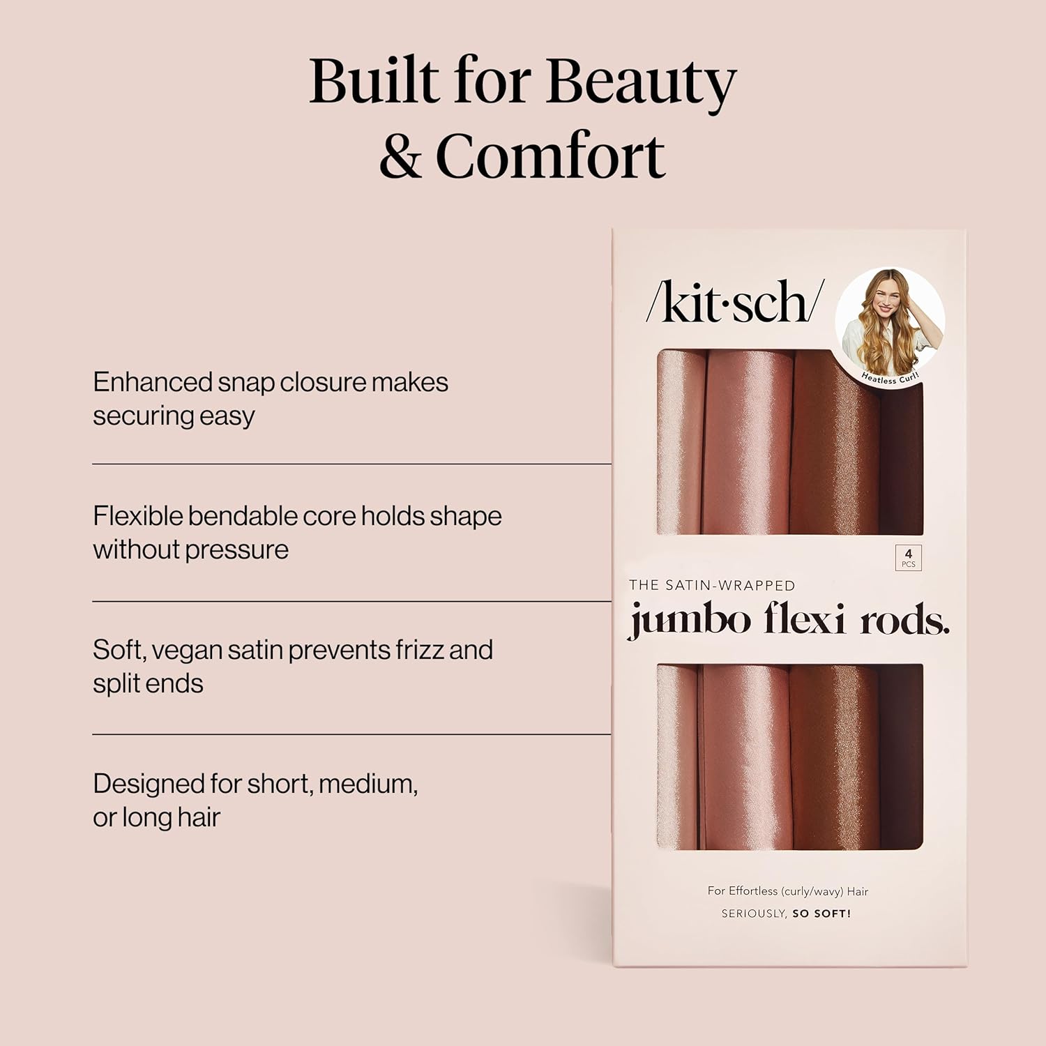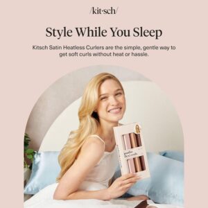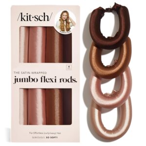 Kitsch Satin Hair Curlers, Heatless Curling Rod – Jumbo Flexi Rod, Heatless Hair Curler – Hair Curlers to Sleep In – No Heat Overnight Curls – For All Hair Types and Texture – 4pcs Rosewood