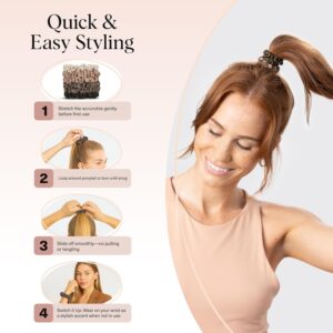 WAKE UP FRIZZ-FREE: The soft satin construction reduces creases and breakage so you can wake up to smoother, healthier-looking hair. Whether you use them as overnight ponytail holders or daytime hair elastics, these scrunchies combine care and convenience for effortless, polished looks.
