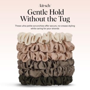 Kitsch Ultra-Petite Satin Scrunchies for Women – Softer Than Silk Scrunchies | Hair Ties No Damage for Frizz-Free Sleep | Perfect for Day or Night | Ideal Gifts for Women – Eucalyptus, 6 pcs