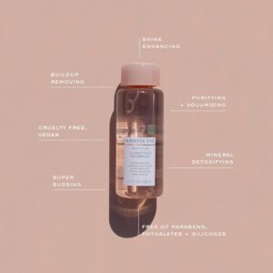 “Sometimes you just need a fresh start. This clarifying shampoo removes mineral deposits, product buildup, excess oils, and even silicones that can build up over time. Use this when needed to get a deeper clean.” – Kristin Ess