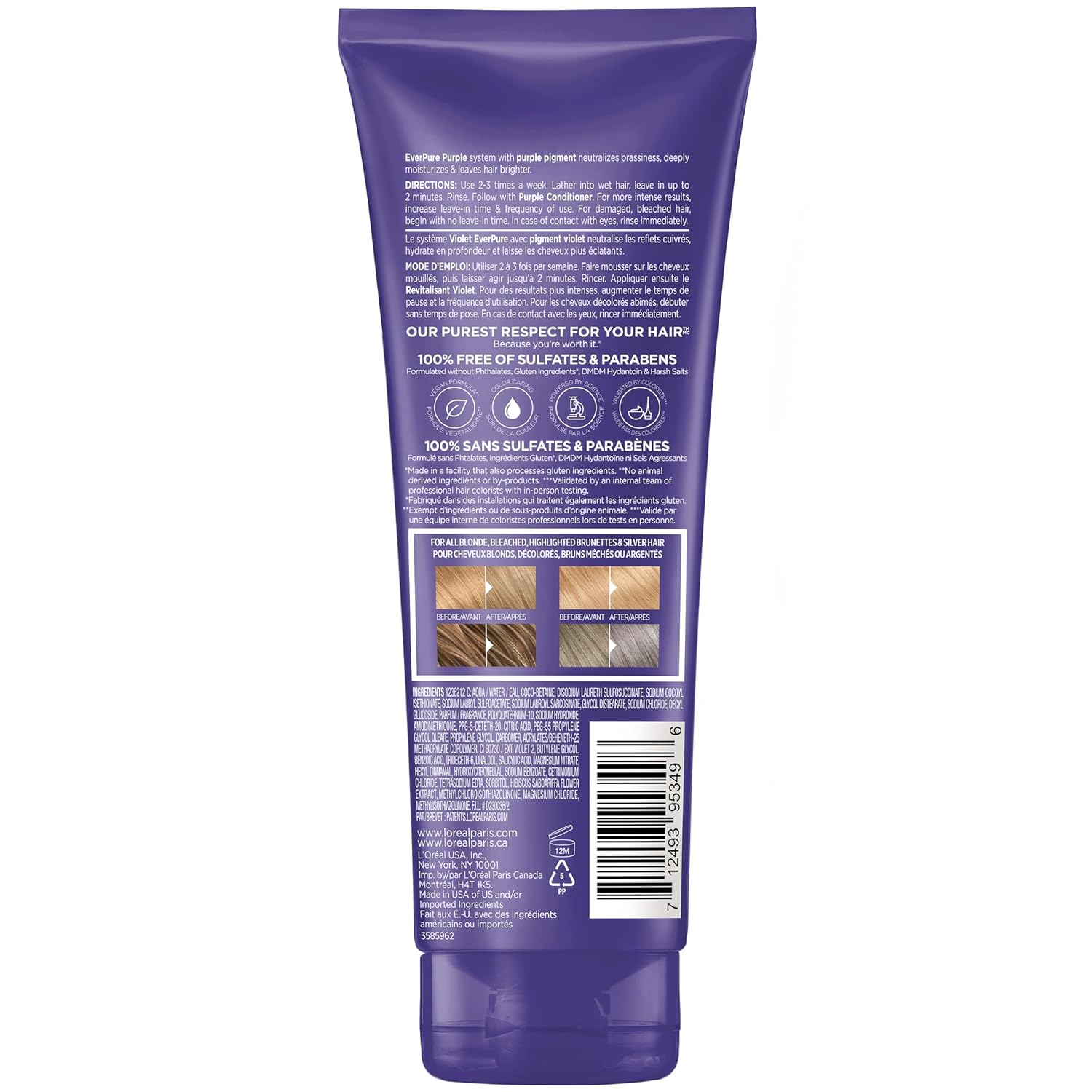 L’Oreal Paris Sulfate Free Brass Toning Purple Shampoo for Blonde, Bleached, Silver, or Brown Highlighted Hair, EverPure, 6.8 Fl Oz (Packaging May Vary)