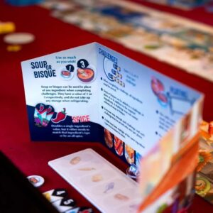 It’s Restaurant Week in Bistro Bay! Challenges are set for restaurants to meet, and a Critic will be coming to determine who is the greatest competing restaurateur! As one of 2-7 players, you’ll be secretly sending 3 different Chefs (workers) into the city in an effort to gather the best ingredients faster than your competitors and make those meals. Rumors abound about the Critic coming to town, and your Chefs have opportunities to listen in. Play with different Critic, Rumors, and Restaurateur abilities to ensure a different experience every game! Critter Kitchen A La Cart adds fun twists to locations, while additional Zous Chefs, critics, restaurateurs and rumors increase replayability. The 6/7 player mode allows you to bring everyone to the table on game night. Recommended for 1-7 players, ages 10 and up.