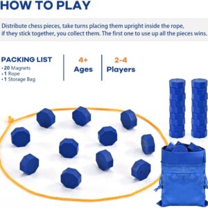 EASY AND FUN: To start the magnet game, distribute all the stones to each player. Take turns placing them upright inside the rope. Don’t let your stones get attracted, or you’ll have to collect them. The first one to use up all the stones wins!