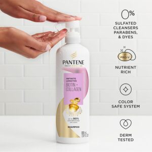 Pantene Infinite Lengths Shampoo, Sulfate Free with Biotin + Collagen, Strengthens Brittle Hair, Up to 90% Less Breakage, Safe for Color Treated Hair, Pro-V Miracles, Floral Scent, 30 Fl Oz