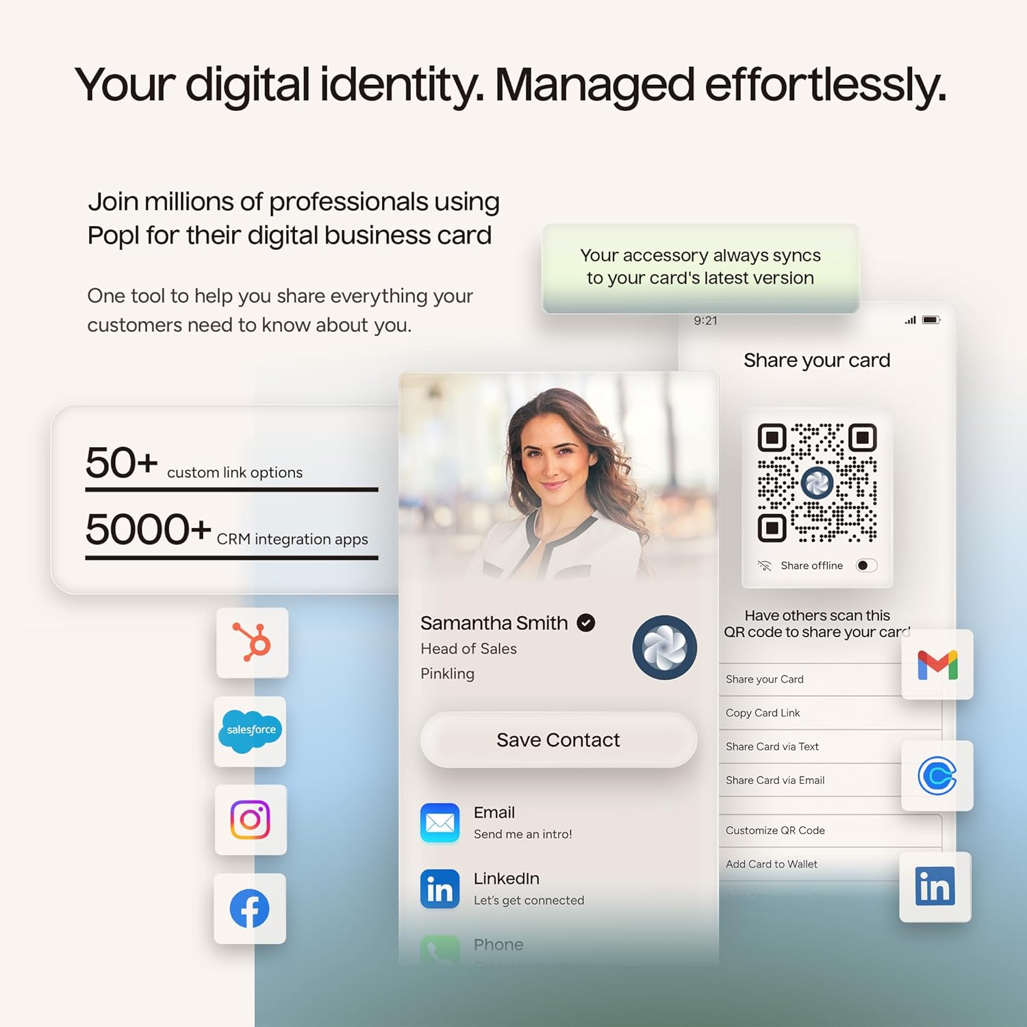 Smart Business Card: Share your digital information instantly with Popl. Our electronic business card is NFC-enabled for smart business making it easy to connect—just tap or scan the built-in QR code. Fully compatible with both iPhone and Android, Popl is the simplest way to share who you are, anywhere.