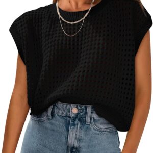 PRETTYGARDEN Womens Spring Tops 2026 Summer Shirts Crochet Cap Sleeve Sweater Pullover Cute Beach Vacation Clothes