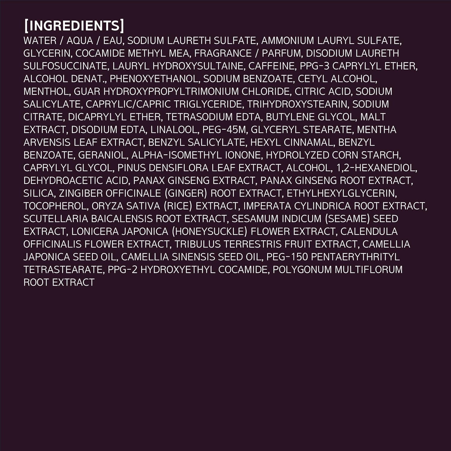 A specialized technology to combine Ginseng extract from whole ginseng(root, stem, leaf, fruit) harvested in June when its active ingredients reach their peak. The leaf and stem(above the ground) have over seven times higher key ingredients providing nourishment to the scalp and hair than the roots(underground)