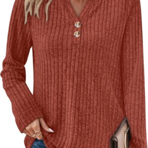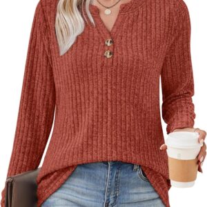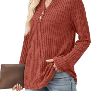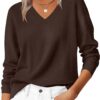 SAMPEEL Long Sleeve Shirts for Women V Neck Sweaters Fall Fashion Outfits Soft