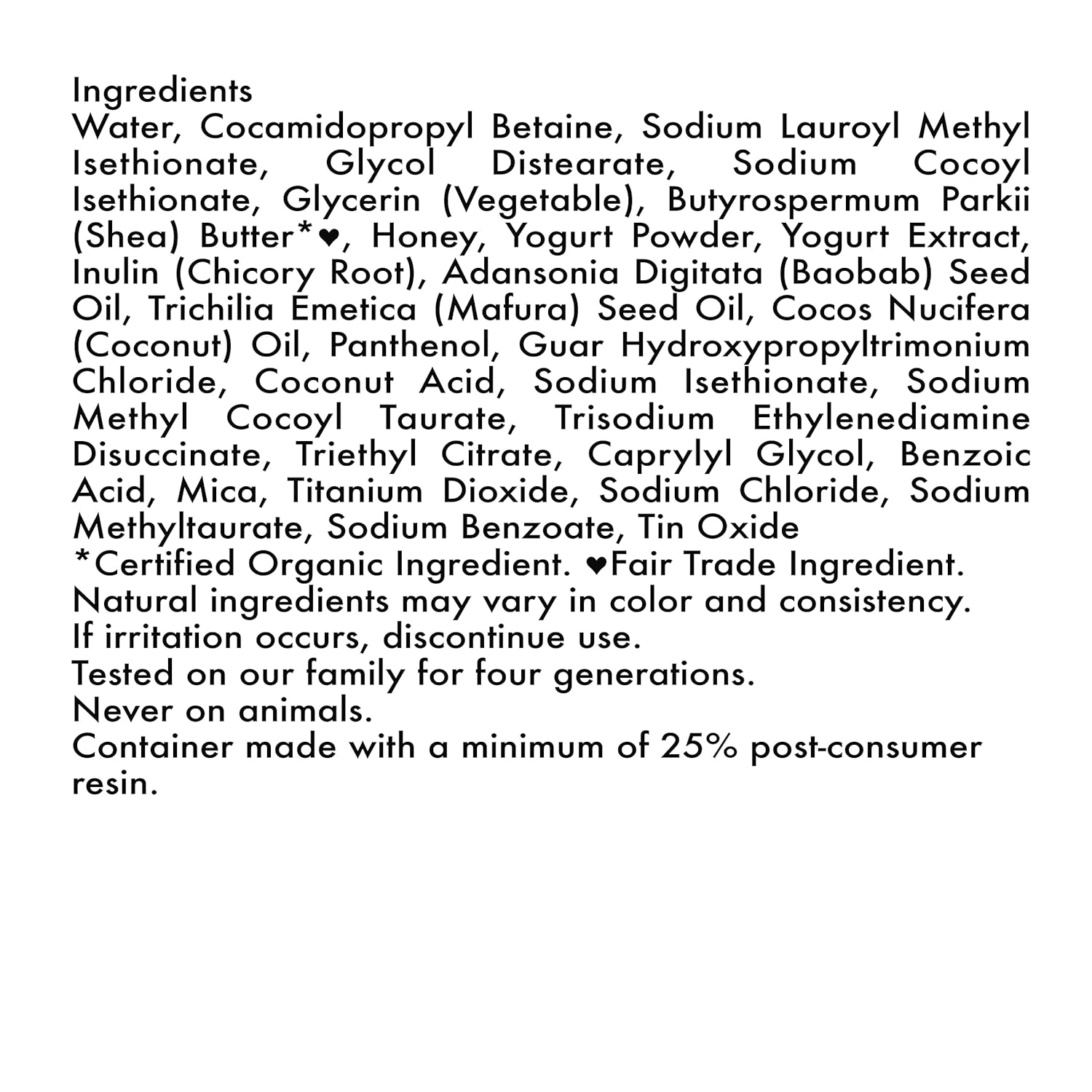 Blended with manuka honey, yogurt, and fair-trade shea butter, this sulfate-free shampoo gently cleanses hair and replenishes moisture to dry brittle strands.