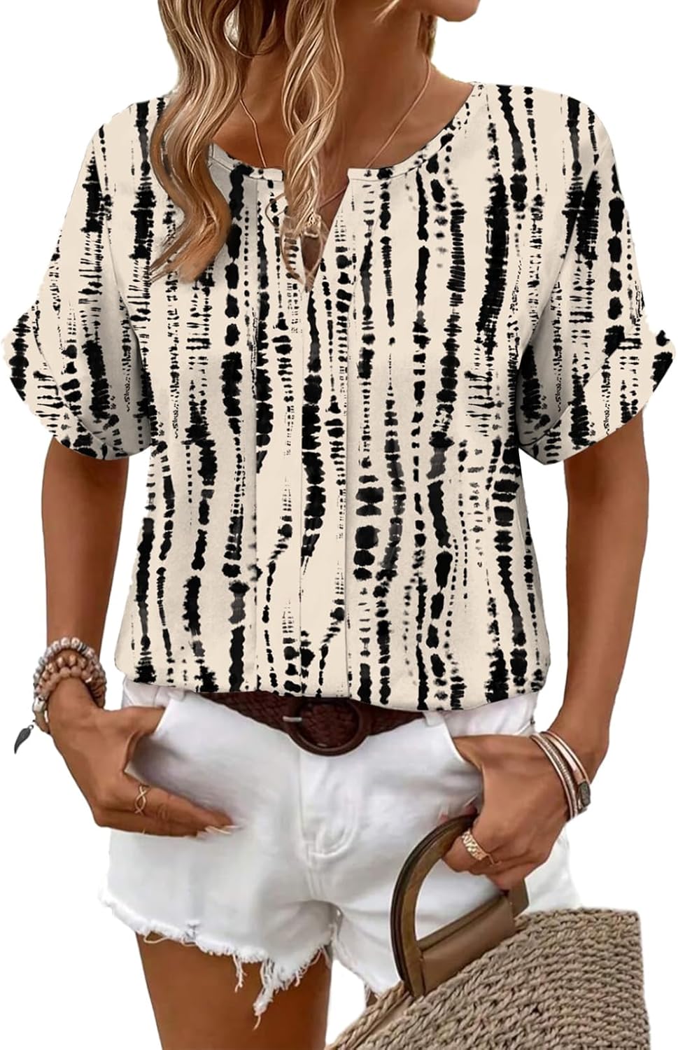 These women’s summer tops have a beautiful vintage, boho vibe that’s perfect for warm-weather outfits. The V-neck and short sleeves create a flattering, easy fit, while the printed design adds personality without feeling overdone. They’re casual enough for everyday wear but can easily look dressy with the right accessories.The quality is decent, the fit is comfortable and forgiving, and the materials feel good for summer. They feel durable enough to wear often and wash well, and the price is very reasonable for such a stylish blouse.Perfect for vacations, casual outings, or even relaxed workdays. Easy to style, lightweight, and effortlessly cute—I highly recommend!