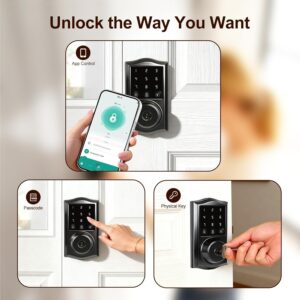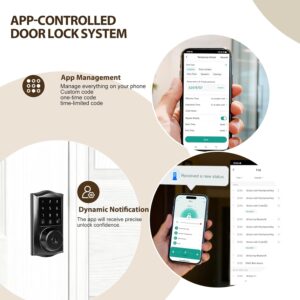 Multiple Unlocking Methods & Remote Access – Unlock your door using a keypad or mechanical key. Additionally, enjoy remote access via Bluetooth app, dynamic remote codes, or temporary codes, offering flexibility and convenience for all users.