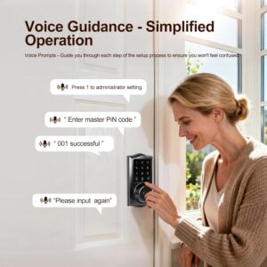 Voice Navigation & Anti-Peeping Password Technology – The lock features built-in voice prompts for easy setup and usage, and the anti-peeping code feature ensures your passcode remains secure. A low battery reminder ensures you’re always informed when it’s time to replace the batteries.