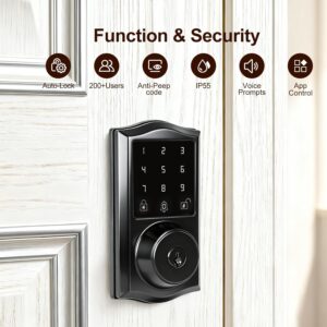I picked up this smart keyless entry door lock to modernize my front door, and it’s been a solid upgrade from a traditional deadbolt. From the first use, it feels like a well-thought-out piece of tech that balances convenience with everyday practicality.The app control works smoothly and makes managing access surprisingly easy. Being able to lock or unlock the door remotely, check activity, and add or remove users without dealing with physical keys is a huge quality-of-life improvement. The high user capacity is especially useful if you have family members, guests, or service access to manage.The touchscreen keypad is responsive and easy to read, even in lower light. Entering a code feels quick and intuitive, and the voice prompts provide helpful feedback without being intrusive. I also like having the built-in doorbell, which adds an extra layer of usefulness without needing another device on the door.Auto-lock is one of those features you don’t realize you need until you have it. Knowing the door will lock itself after a set time adds peace of mind, especially during busy days when it’s easy to forget. It’s customizable enough that it feels supportive rather than restrictive.Installation was refreshingly straightforward. The lock fit standard door prep without modifications, and the instructions were clear enough to follow without frustration. It feels sturdy once installed, and nothing about it feels flimsy or rushed in design.The IP55 waterproof rating gives confidence for outdoor use. It’s held up well against rain and changing weather, with no issues in responsiveness or performance. The lock feels designed for real-world conditions, not just indoor testing.Overall, this smart door lock offers a strong mix of security, convenience, and smart features. It simplifies daily routines while adding a sense of control and reliability. If you’re looking to move away from keys without overcomplicating things, this lock is a dependable and user-friendly option.