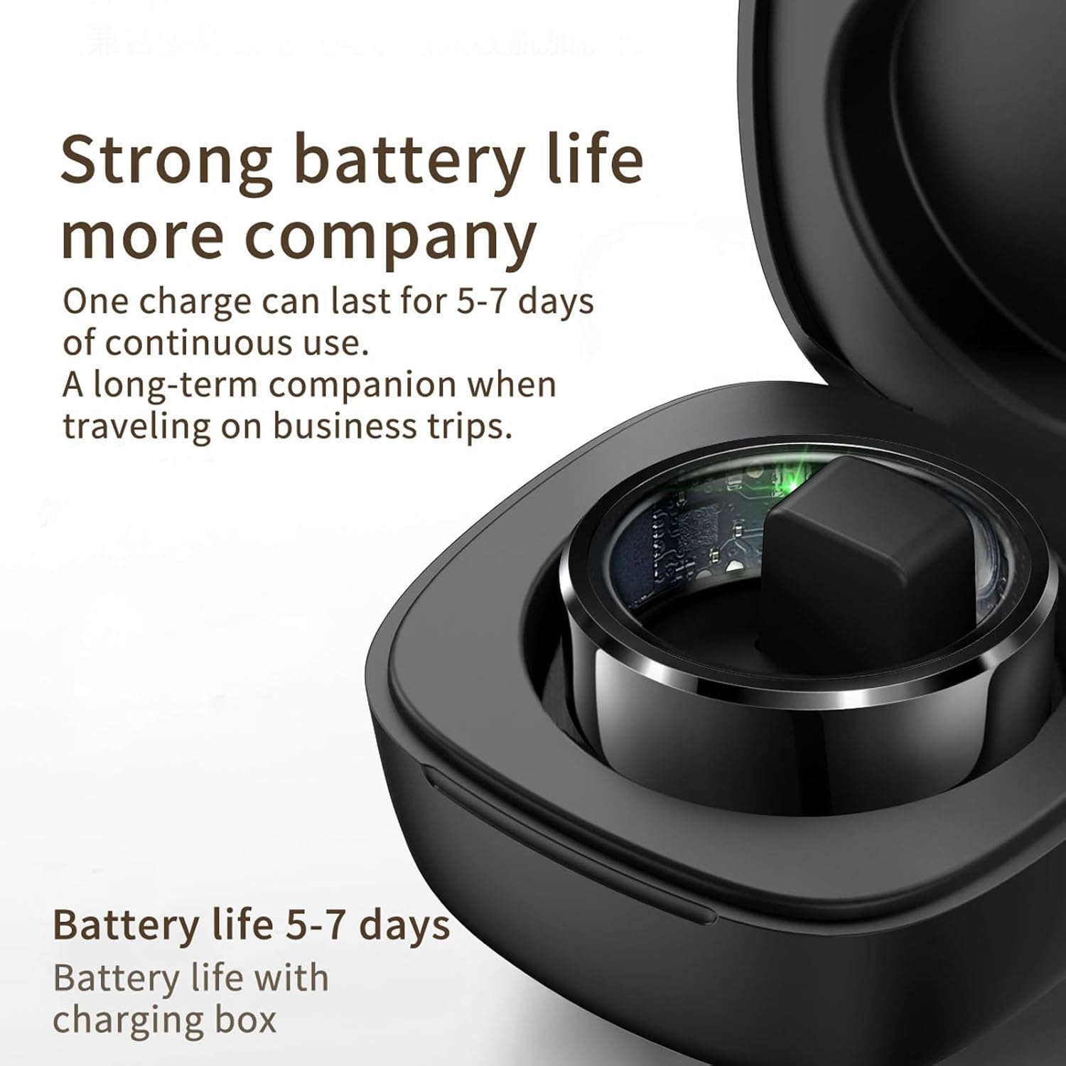 Charging Compartment & Easy to Carry: This smart ring comes with a charging case that eliminates the need for a charging cable, making it easy to carry and store. Able to accompany long term travel or business trips.