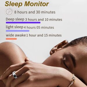 Health Smart Ring: The health ring can monitor your hear rate and blood pressure at any time with one click on the App, allowing you to better understand your physical condition and make corresponding adjustments. Built-in automatic sleep tracker can monitor your sleep status and provide a comprehensive sleep quality analysis (deep sleep, light sleep, and wake-up time), allowing you to develop good sleeping habits.