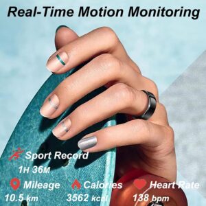 Sport Fitness Ring: Collect everyday steps, calories consumption and distance walked automatically. Turn on the sport modes in the App, it will additionally track your sport route, activity time and heart rate during exercise, this allows you can see the real-time sport performance and know when you should save motivation or keeping exercise hard.