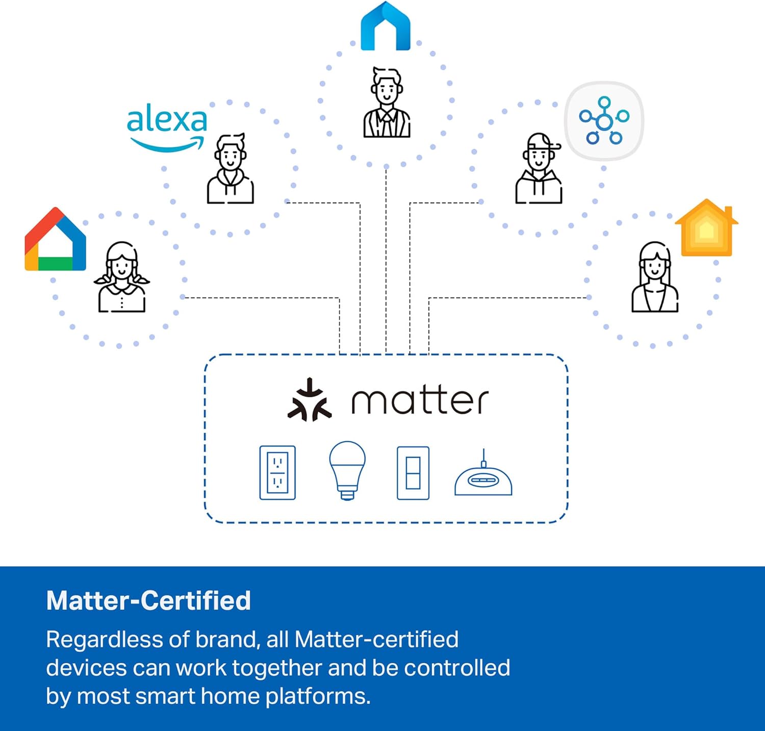 ๐๐๐ญ๐ญ๐๐ซ-๐๐๐ซ๐ญ๐ข๐๐ข๐๐ ๐๐จ๐ซ ๐๐ง๐ข๐ฏ๐๐ซ๐ฌ๐๐ฅ ๐๐จ๐ฆ๐ฉ๐๐ญ๐ข๐๐ข๐ฅ๐ข๐ญ๐ฒ – Matter-certified devices, regardless of brand, can work together and are can be controlled through most major smart home platforms like Alexa, Google Home, Apple HomeKit, and Samsung SmartThings.
