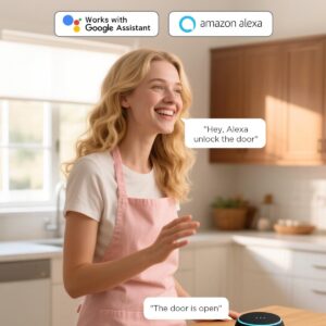 ๐ฆ๐บ๐ฎ๐ฟ๐ ๐๐ผ๐บ๐ฒ ๐๐ป๐๐ฒ๐ด๐ฟ๐ฎ๐๐ถ๐ผ๐ป ๐๐ถ๐๐ต ๐ฉ๐ผ๐ถ๐ฐ๐ฒ ๐๐ผ๐ป๐๐ฟ๐ผ๐น : Works with Amazon Alexa and Google Home, letting you control your smart door lock with your voice. Create simple home automations that help keep your home safer and more secure, adding hands-free convenience to everyday life.